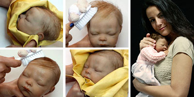 Our Hyperrealistic Babies are completely made by us. We created our unique reborns following a thorough process of extremely detailed modelling, followed by complex molding and casting using “state of the art” techniques. The work is completed by finishing minor details and applying several layers of special paints to mimic every detail of the skin (capillairs, spots, redness…). And of course by grafting high quality hair one by one mimicking the natural pattern of hair growth in each head section.